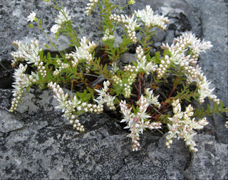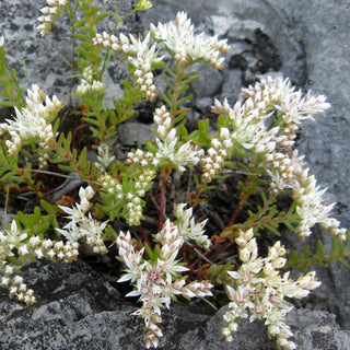 Unique crisscrossing stems of bright pink flowers that bloom prolifically! Lush green foliage. Stonecrop Widow's Cross, or Seastar, is also unique in that it tolerates moisture, and grows on limestone rocks that remain evenly moist. Tolerates shade and moist places.