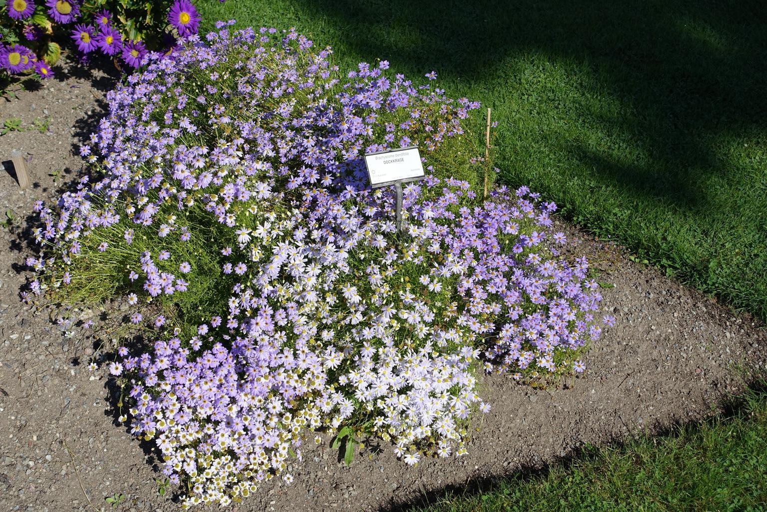 Masses of fragrant daisy flowers of blue, white and violet. Blooms throughout the summer.