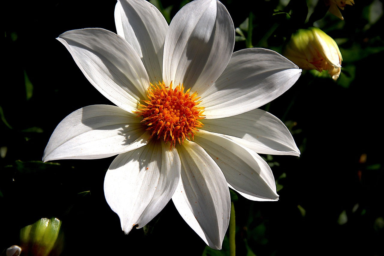These seeds are for the white form. The largest of all dahlias, this Mexican giant can grow up to 5-8m tall! Enormous, dense clusters of large, golden-centred, white flowers open on the strong, bamboo-like stems. The foliage often has a purplish tinge. Budding and flowering occur in late summer. An unbeatable architectural plant for a warm exotic border or a large container in a greenhouse or tall conservatory. It is a tuberous, herbaceous perennial, rapidly growing in springtime from its tuber, after a dormant winter period (which may be brief in mild climates).