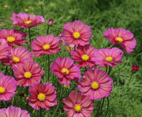 Warm pink-apricot blooms! Absolutely beautiful full cosmos flowers with strong upright stems. Slightly compact growth, and excellent cutflowers.
