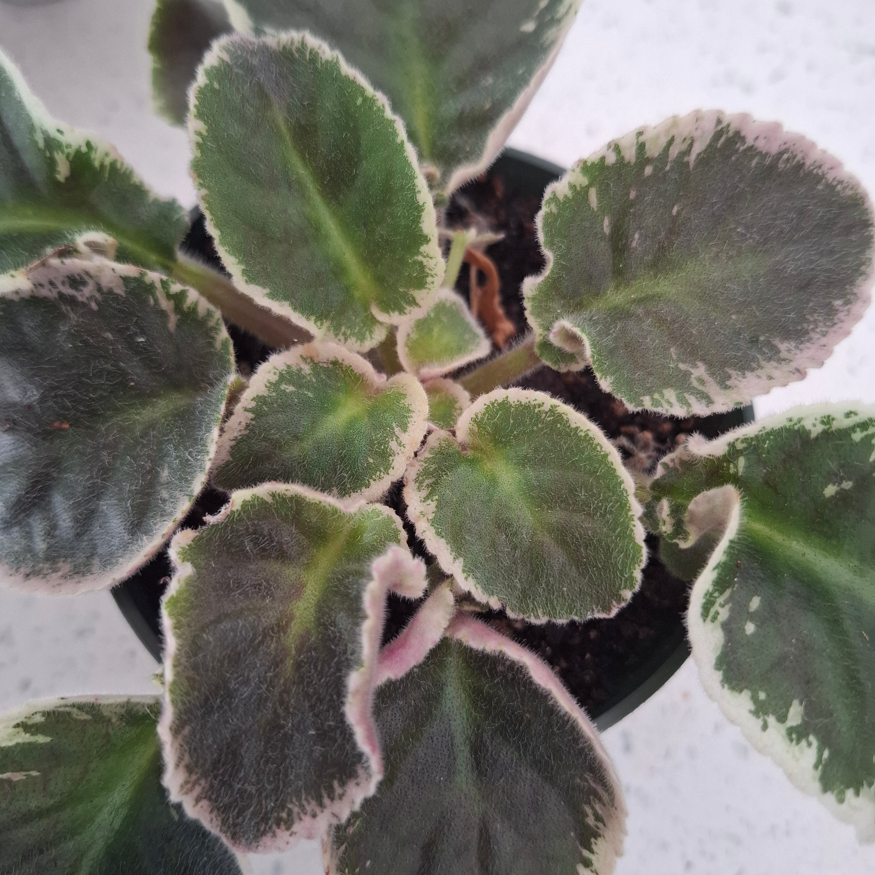 A unique offering including African Violets with variegated foliage, double flowers and fancy flowers! One leaf cutting per order.