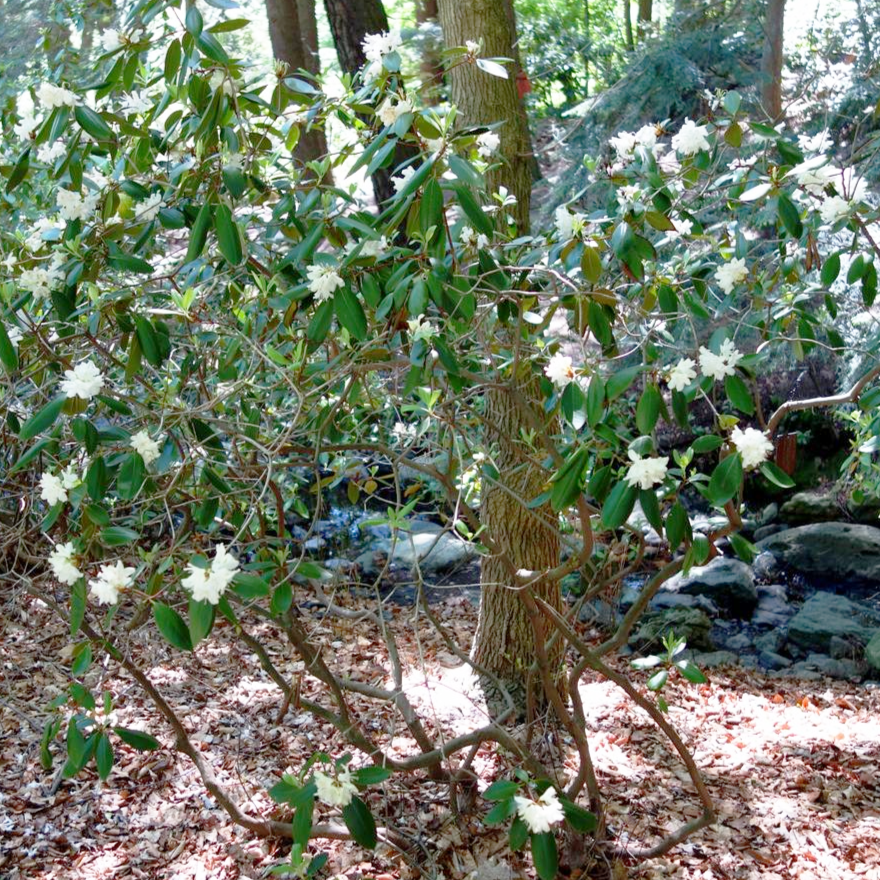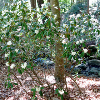 Carolina Azalea or Carolina Rhododendron, is an evergreen plant Carolina rhododendron or Carolina azalea, is native to the USA from North Carolina to Florida and Alabama. It is typically found in rocky woods, cool meadows, and mountain stream banks. In May it produces beautiful 3-inch white flowers.