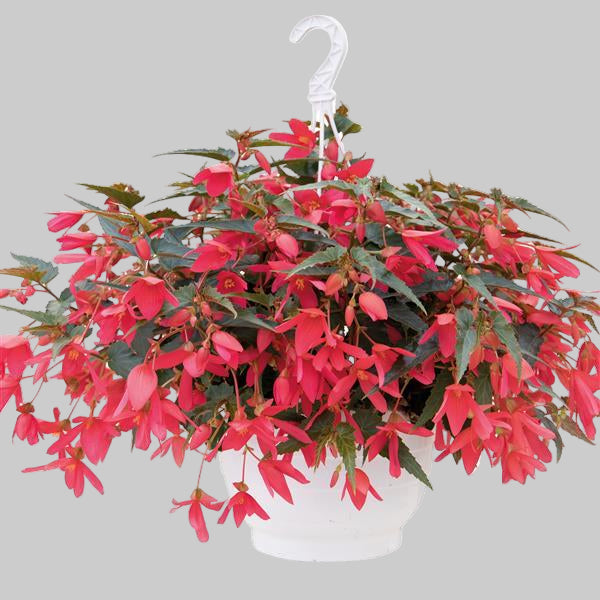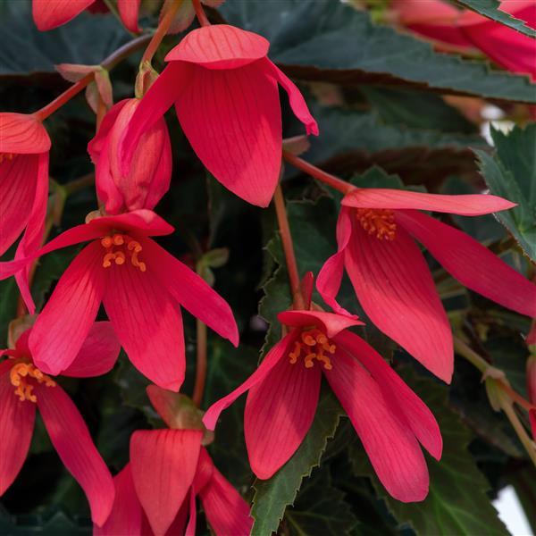 Large flowers presenting masses of color in hanging baskets and containers. A begonia that also thrives in full sun!