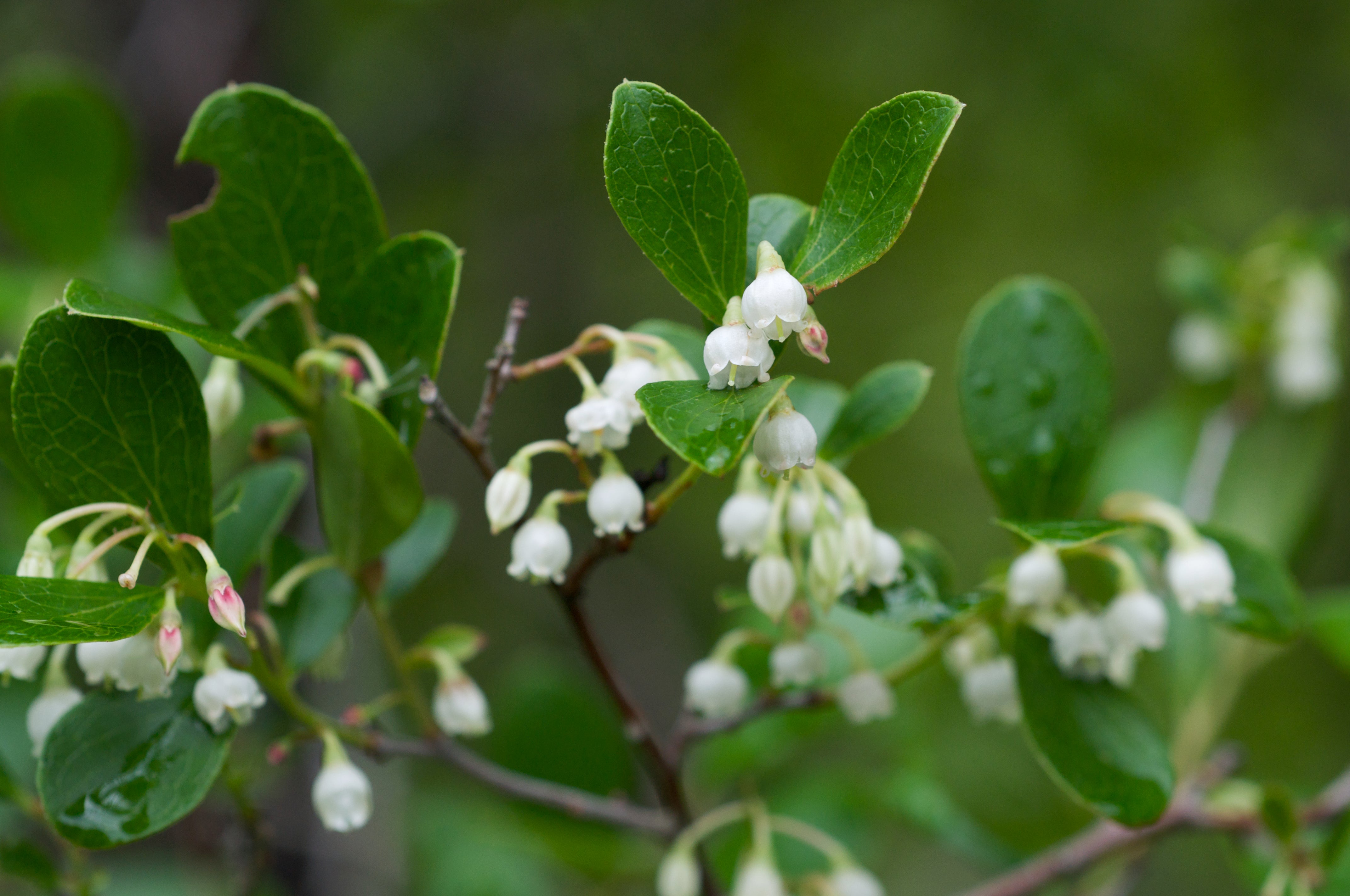 The flowers are white, bell-shaped, and 3-4 mm (0.12-0.16 inches) in diameter. The fruit is a round dry berry about 6 mm (0.24 inches) in diameter, green at first, black when ripe, edible but bitter and tough. They are eaten by various wildlife.