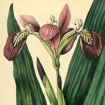 A strain with red blossoms. Iris versicolor is a flowering perennial plant. It tends to form large clumps from thick, creeping rhizomes. Flowers bloom during May to July.