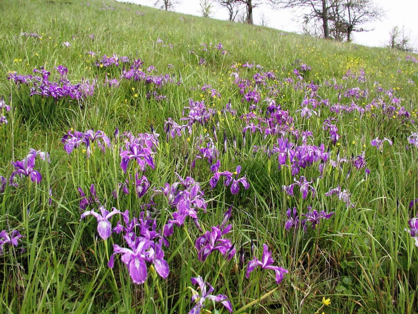 The leaves are very slender for an iris. Its rhizomes spread slowly, causing the plant to grow in a tight clump.