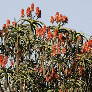 Aloidendron barberae, formerly Aloe bainesii and Aloe barberae, also known as the tree aloe, forms a striking focal point in the garden, being an enormous sculptural tree with a neat crown. It is easily propagated. It prefers well-drained soil, especially on a slope, and can tolerate some when small.. In its native climes this slow-growing tree can reach up to 60 feet (18 m) high and 36 inches (0.91 m) in stem diameter. Aloidendron barberae is Africa's largest aloe-like plant. The tree aloe is often used as an ornamental plant. It flowers in winter. Rare seeds.