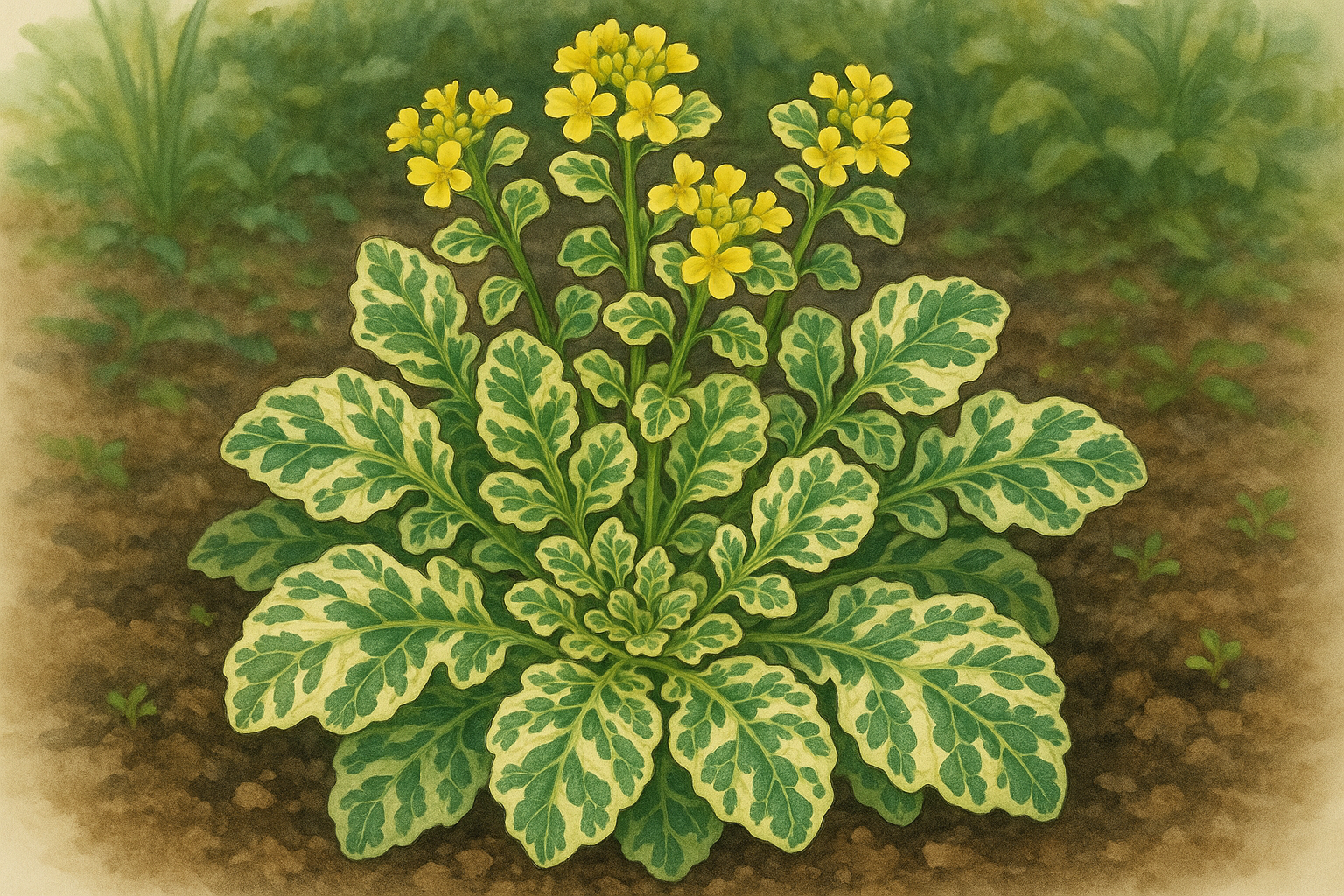 Barbarea vulgaris, also called wintercress, winter rocket, rocketcress, yellow rocketcress, yellow rocket, wound rocket, herb barbara, creases, or creasy greens, is a biennial herb. The flowers are borne in spring in dense clusters above the variegated foliage. The flowering period extends from about April through July.
