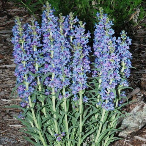 Narrow leaf Beardtongue is native to North America. It is a perennial herb with thick, waxy, gray-green stems growing up to 24 inches tall. The flowers come in shades of pink and purple. The flowers attract hummingbirds! The plants are drought-tolerant, and can be used in landscaping and as a garden plant in xeriscaping situations.