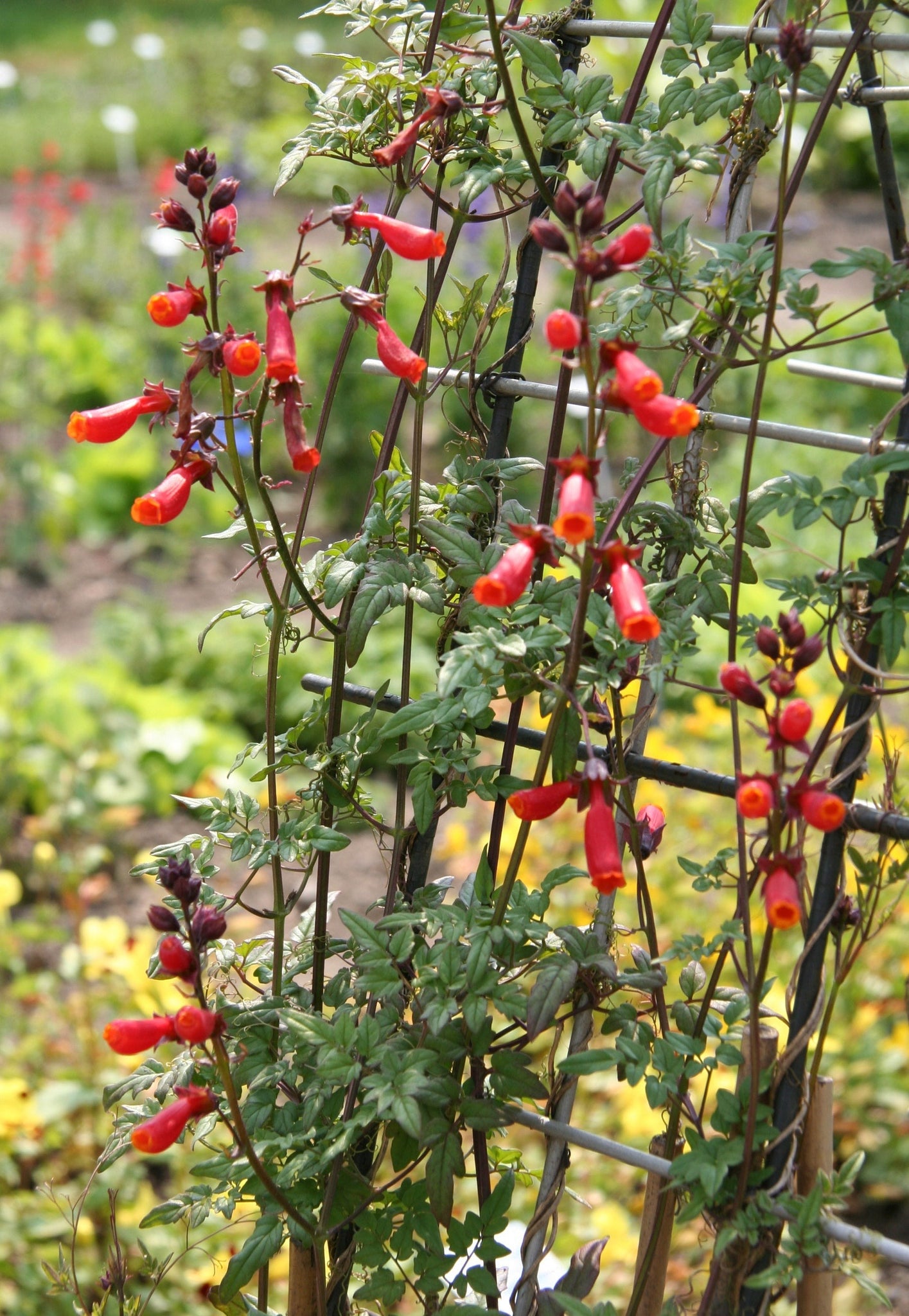 A vigorous climbing vine that perfect for covering fences or an an evergreen shrub. Dazzling red, tubular flowers are produced freely from June to October. Flowers first year from seed, and also makes a hardy overwintering tuber! These seeds are for the red coloured flowers, that have a small amount of yellow on the tips!