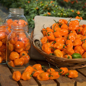 Used fresh or dried in salsas, chutneys, marinades. This is the standard variety which ripens to a fiery golden-orange or red. Thrives in hot sunny spots, a little on the dry side.