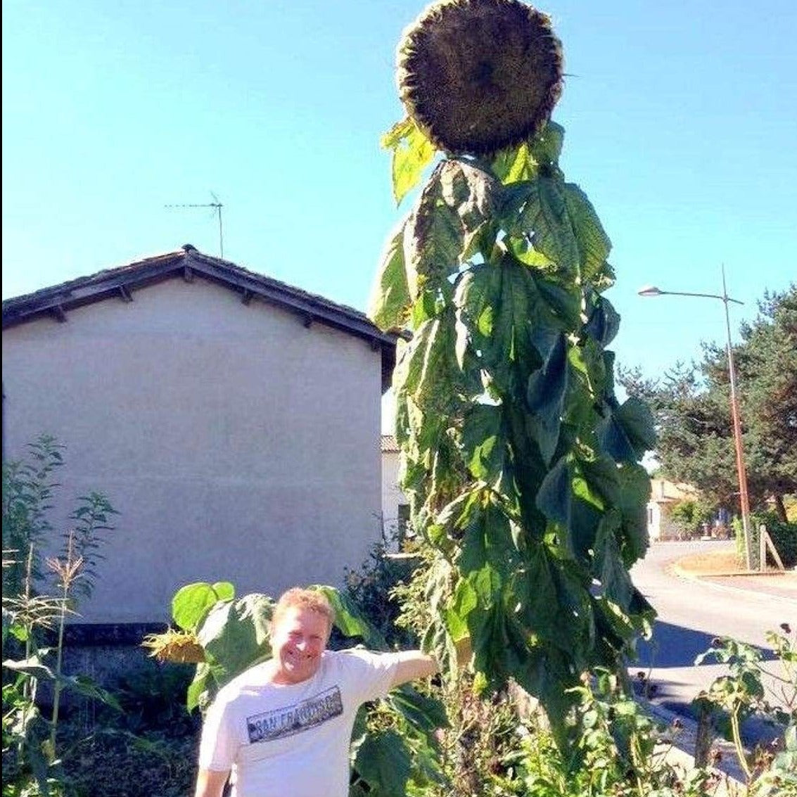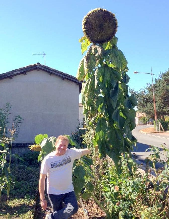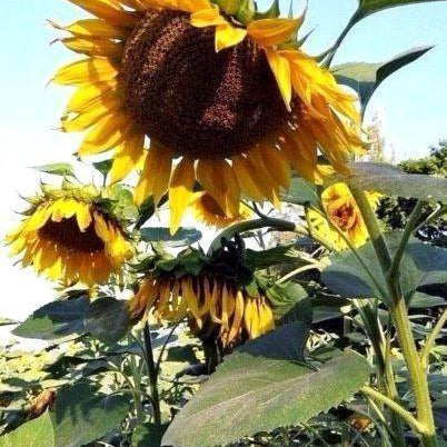 This sunflower is the largest sunflower available, producing flowers up to 14' tall! Not only is this flower tall, but the actual flower is big and wide too! This plant is extremely fun for kids to watch them grow, up much taller than everyone, in a very short time during one growing season! Attracts pollinators.