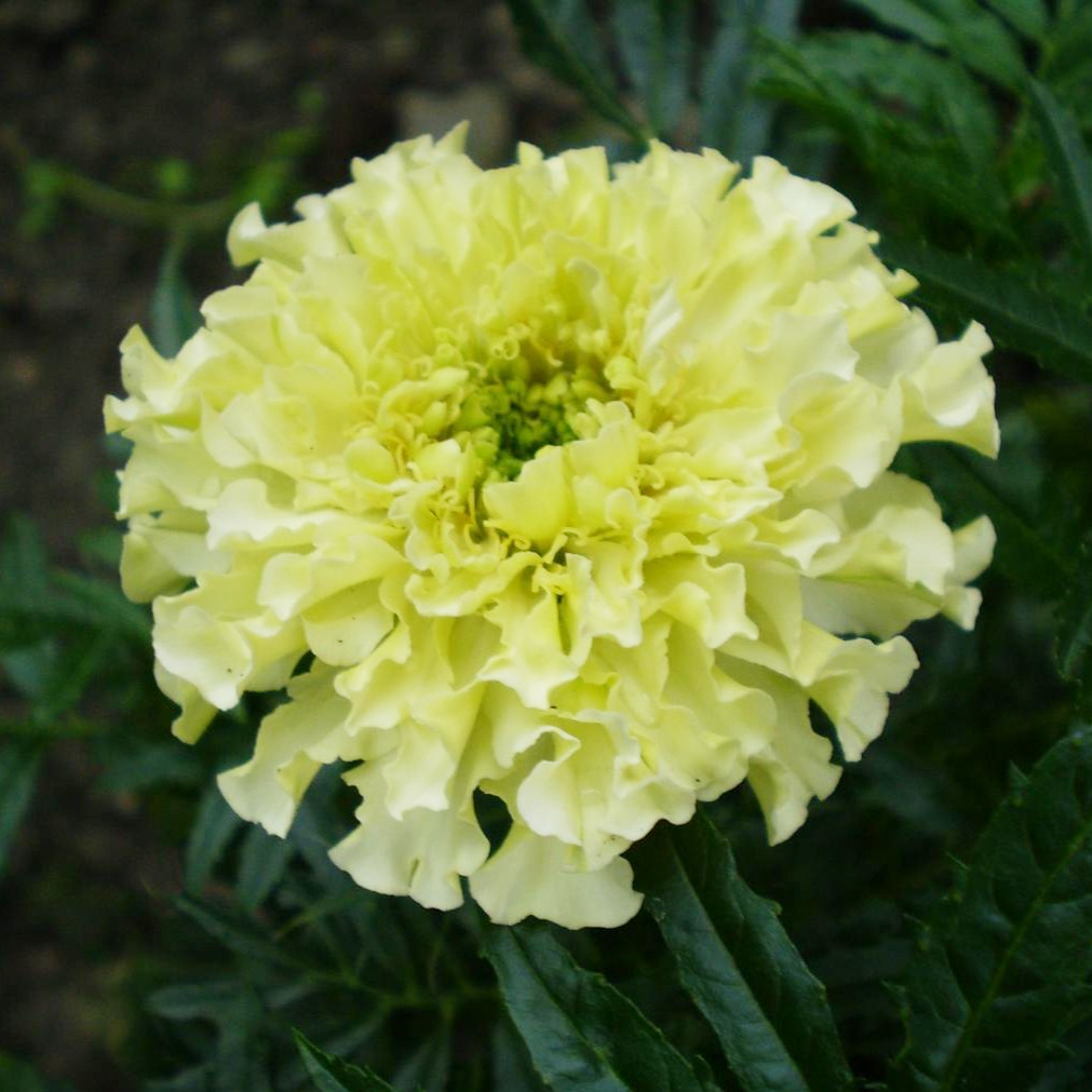 Large flowers up to 3" across are creamy-white, and fully double. The 'Kolimanjaro' are unique because the flowers start rounded, and then open up to reveal a golden center!