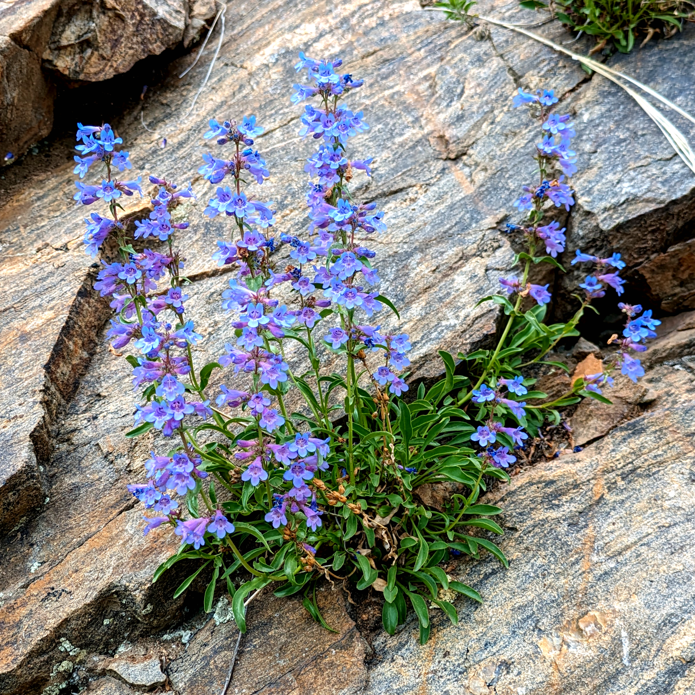 MtBotany, Penstemon virens on rockface, CC BY-SA 4.0