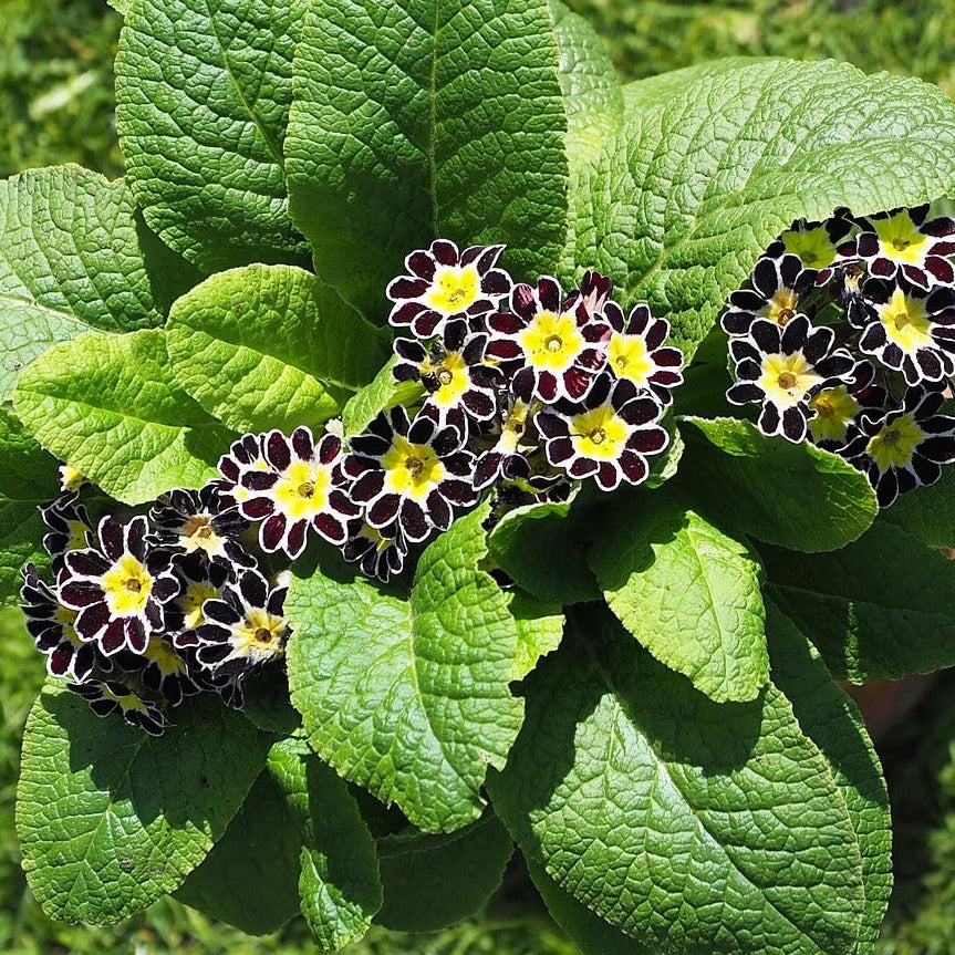 Stunning near-black flowers with a silver lace edge! Primula are one of the most colorful plants for shade. Primula like the cool temperatures of spring, and begin to bloom very early in the spring.
