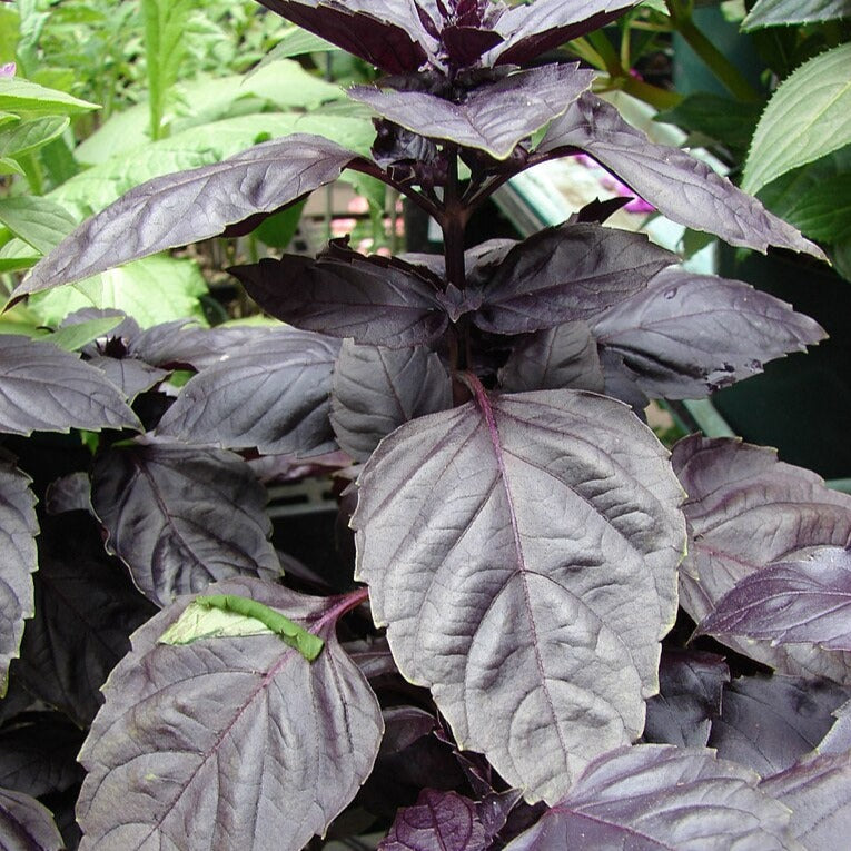 This is the first red-leaf form of the popular Genovese Basil! It has the same shape and flavour as the green form, and is slightly more ornamental. Genovese Basil is the most popular culinary basil that is loved for its large leaves and sweet, mildly spicy flavour! Sourced from Genoa area of Italy, the pesto capital of the world! This is a great culinary variety as it does not bolt as quickly as other basil. It also retains its flavour well as it ages. Perfect for pesto salads, and any dish calling for a large leaved basil.