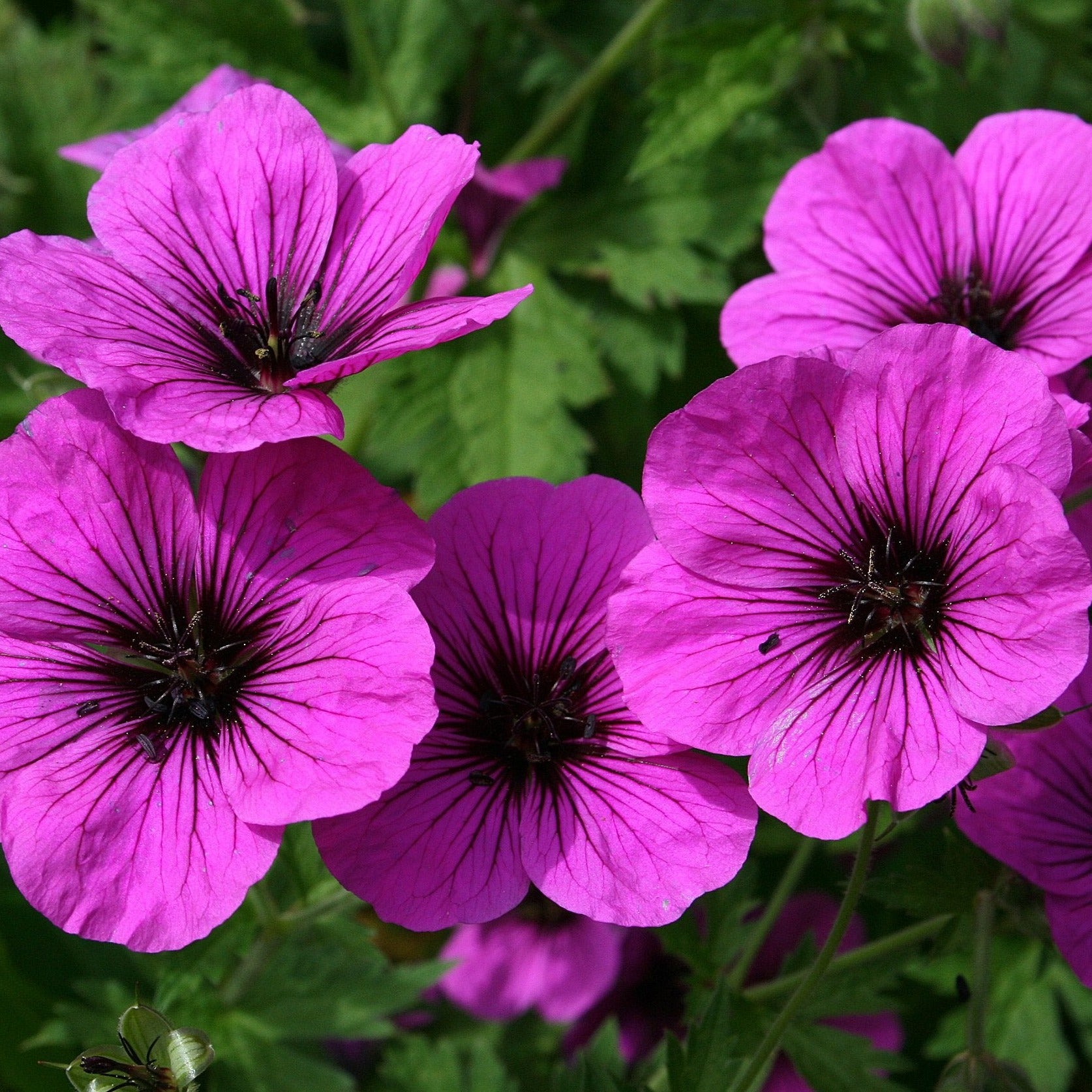 This pretty Geranium has intense deep red flowers, with a nice contrasting dark eye! The plants bloom throughout the season! Adds brilliant color to the perennial garden. This plant makes an excellent ground-cover!