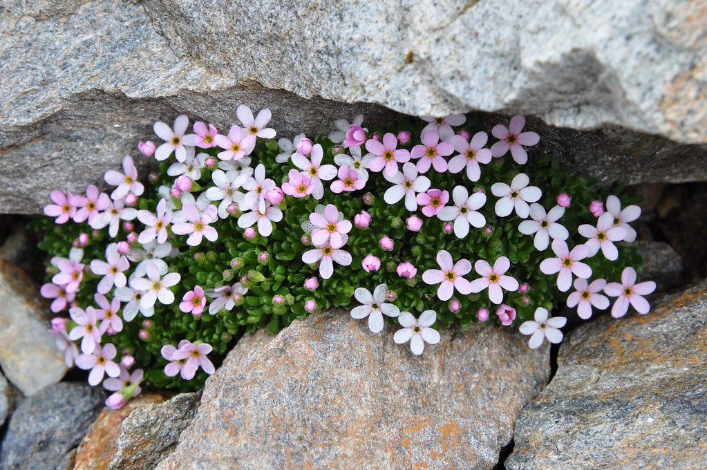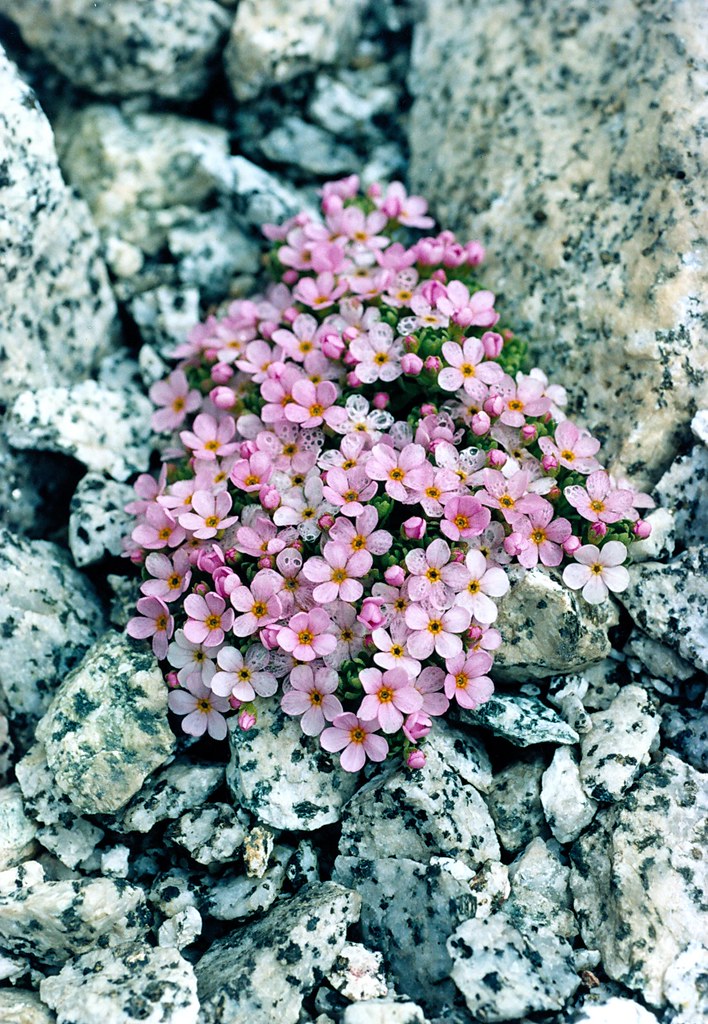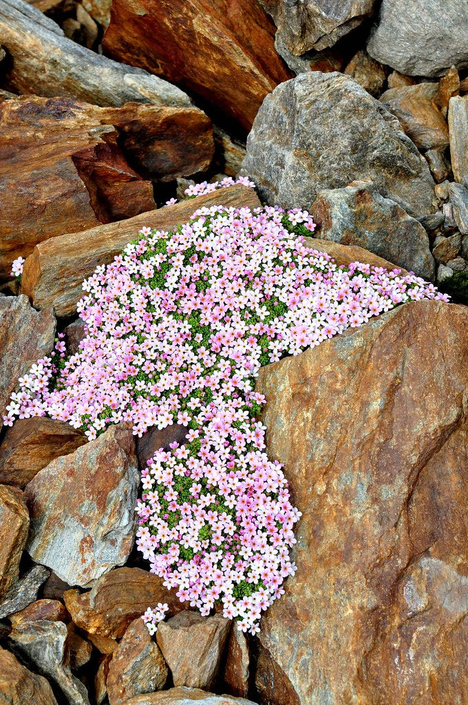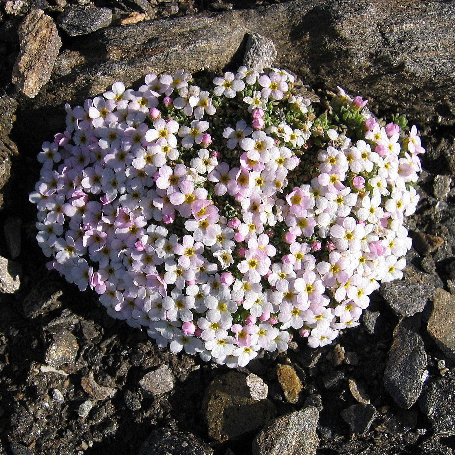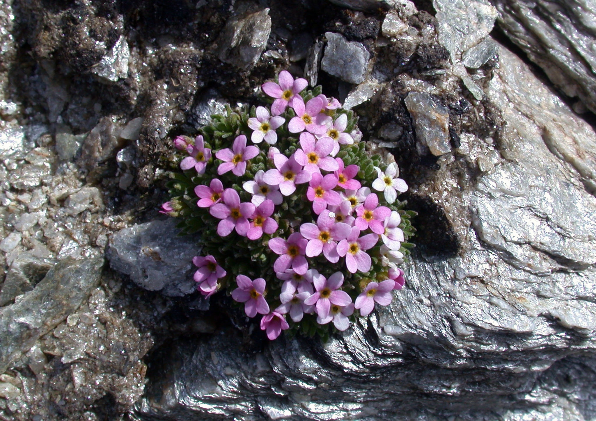 In the wild, Androsace alpina grows on silicaceous substrates, particularly granite, and is one of the few plants in the Alps to grow above 4000 metres, including near the summit of the Matterhorn (only Ranunculus glacialis and perhaps Saxifraga biflora grow higher). The plant feeds of the substance that grows under the rocks that the Androsace Alpina is on.