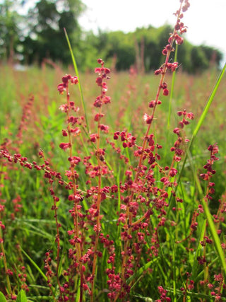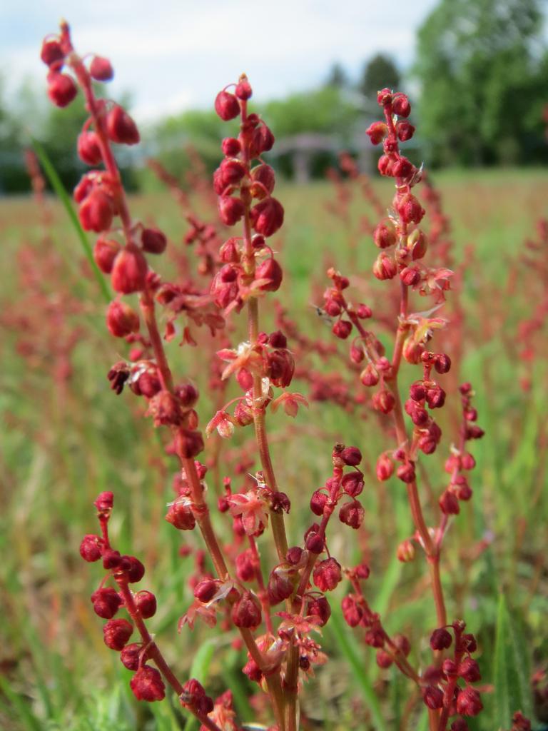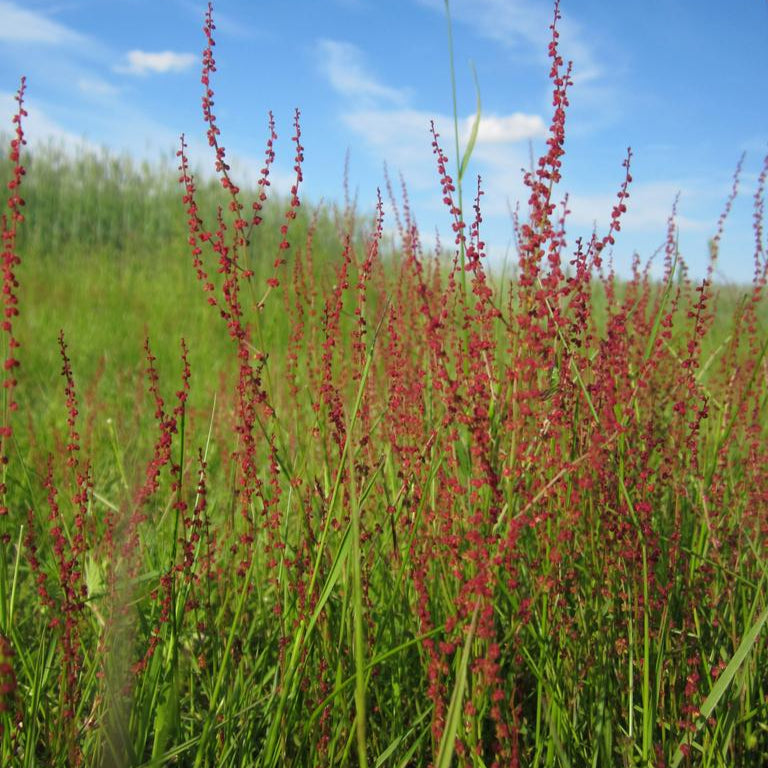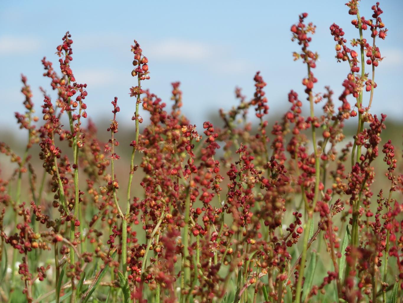 Commonly known as red sorrel, sheep's sorrel, field sorrel and sour weed, is a flowering plant in the buckwheat family. It is a perennial herb which spreads via rhizomes. It has a slender and reddish, upright stem that is branched at the top. It blooms during March to November, when yellowish-green (male) or reddish (female) flowers develop on separate plants.