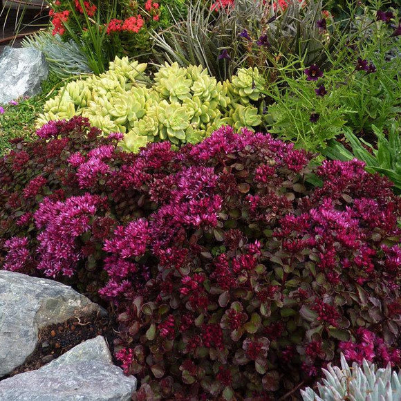 An all-new Sedum with deep-red foliage, and bright deep red-purple flowers! Darker and improved from the previous red-leaved Sedum. Attractive to pollinators. Very popular and rare seeds!