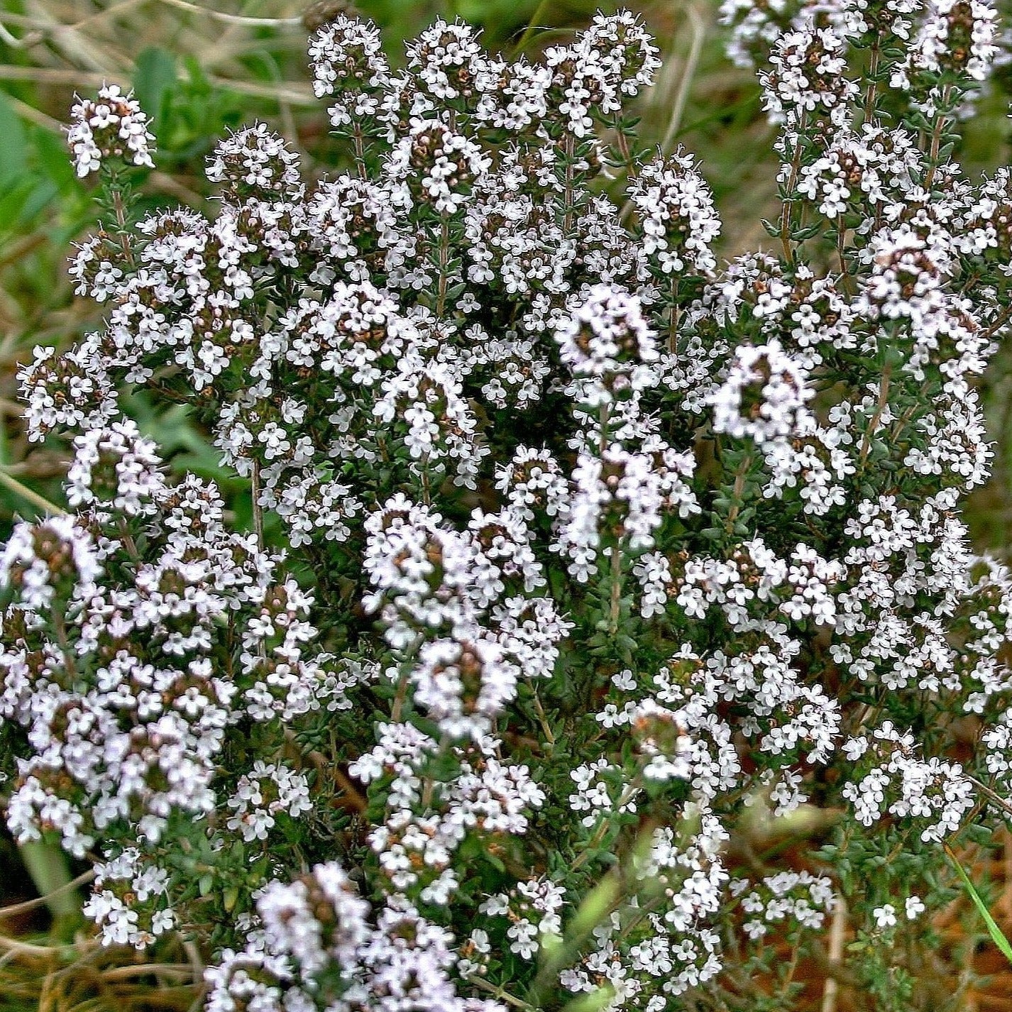 One of the most popular varieties of thyme! Greyer colour and sweeter than the English variety. Said to be one of the most flavourful of all the thyme varieties, preferred in French cuisine. Produces pale lavender flowers. Harvest in the morning, as concentrations of aromatic oils are highest at this time. Can be stored by freezing or drying.